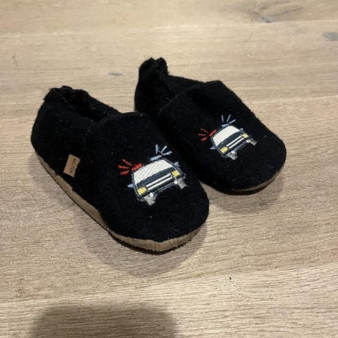 Polarn O. Pyret tossor med en blå ugglemönster i storlek 26-27, färg: grå/blå/rosa. Kan tvättas. I normal begagnat skick.