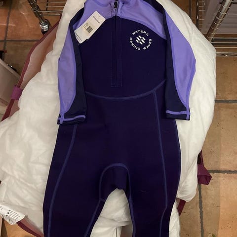 NAC kortärmad våtdräkt i storlek för barn (2-3år). Dräkten är tillverkad i neoprenmaterial med färgerna svart, blå och gul. Den har dragkedja baktill för enkel på- och avklädning. Hämtas i Dalby.