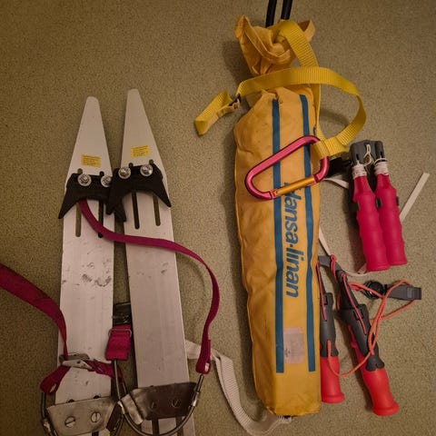Långfärdsskridskor, isdubbar, hjälm & knäskydd - ALLT OANVÄNT