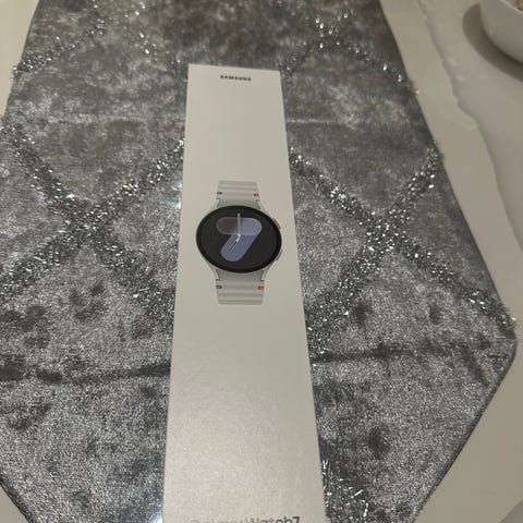 Säljer en Samsung Galaxy Watch 8, 44 mm i silver.
