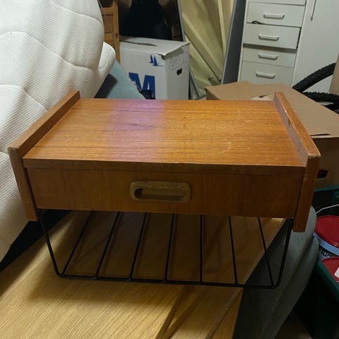 Utförd i teak med stabil stomme och klassiska rena linjer. En mycket användbar möbel som kombinerar funktion och retroestetik på bästa sätt.