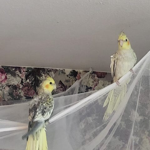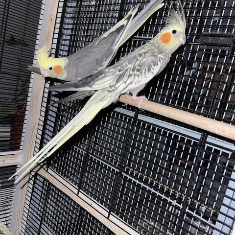 Två otroligt tama nymfparakiter som är väldigt familjevänliga. Hanen älskar att sjunga och han kan säga några ord på kurdiska, dom båda gillar att äta från handen och båda älskar att umgås när man lagar mat. Jätte stort tillskott till familjen och så enkelt att ta hand om dom. Vi måste tyvärr bli av med dom på grund av tidsbrist, dom behöver någon som kan ge dom uppmärksamhet och massa kärlek!! Allt tillbehör ingår såsom bur, mat, osv. Gärna så snarast som möjligt!!