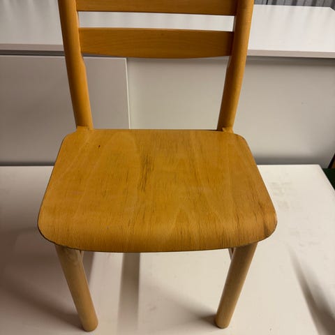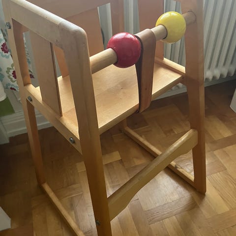Säljer en klassisk barnstol i trä i fint och stabilt skick. Perfekt som matstol eller barnstol vid bord. Tidlös design som passar bra i både moderna och äldre hem.