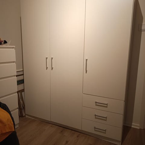 1 klädstång 4 hyllor, 3 dörrar, 3 lådor