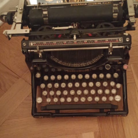 Skrivmaskin från 1900-talets första hälft. Tillverkad av L C Smith & Corona Typewriters Inc. Svensk generalagent var Maskinaffären Carl Lamm. För dig som älskar gamla vintageprylar och tidlös design. Charmigt slitage som vittnar om ålder och autenticitet. Den här vackra skrivmaskinen blir en perfekt prydnad i hemmet, på kontoret eller i butiken.