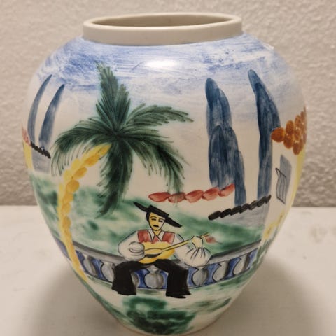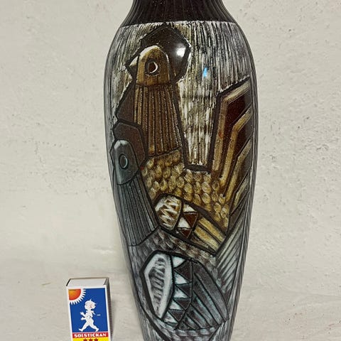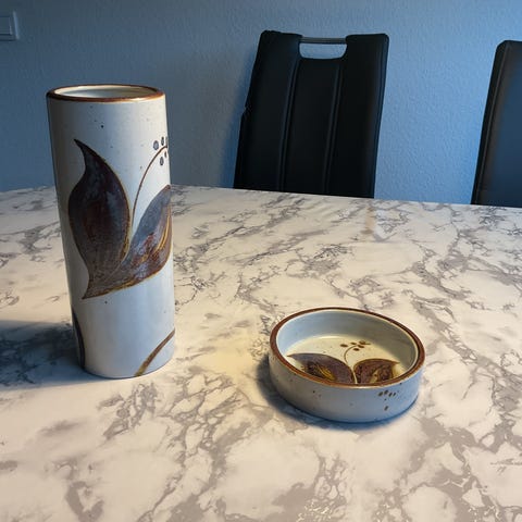 2 st glaserat lergods, Søholm, Bornholm, Danmark, höjd 11 resp 17 cm, 600kr för båda