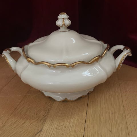 Rosenthal Classic Rose såsskål med tillhörande fat i vitt porslin. Del av Classic Rose-serien, utformad med dekorativa detaljer runt kanten.