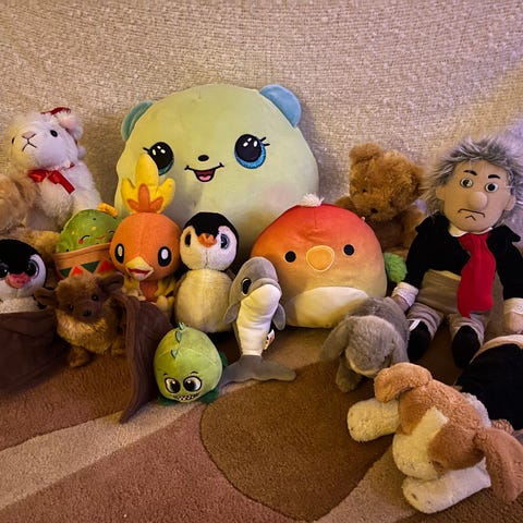 8 gosedjur, smileys, bläckfisk, haj, björn, sköldpadda, 2 filurer.