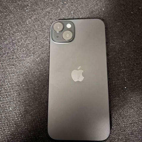 Apple iPhone 15 plus mobiltelefon med 128 GB lagringsutrymme i rosa färg.