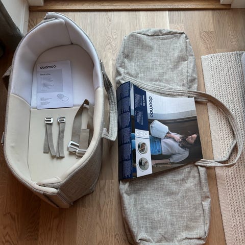 Babynestet är bara använt med skydd, så det finns inga fläckar eller så på tyget, och alla sömmar är i nyskick.