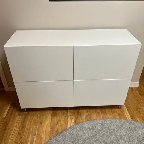 Kombination av högskåp och väggskåp Bestå från IKEA med belysning. Högblank vit. Push open högskåp. Pris för hela kombinationen, kan sälja delar vid förfrågan.