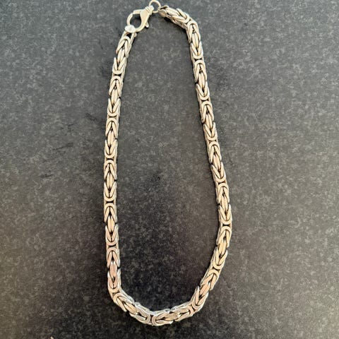 Riktigt mäktig drottninglänk 925 halsband, som sticker ut helt klart. Även till ett kanon pris först till kvarn , stämplar finns och hela 67cm och ligger mycket bra runt halsen med en vikt på 246G runt halva priset mot va den skulle kosta i affären då silver priser flyget i höjden kolla kursen själva. Detta pris är riktigt bra enligt mig , först till kvarn bli den enda som bär denna unika kedja då den är noggrant handgjord av en mycket duktig silversmed. Kolla bild för mer info om den