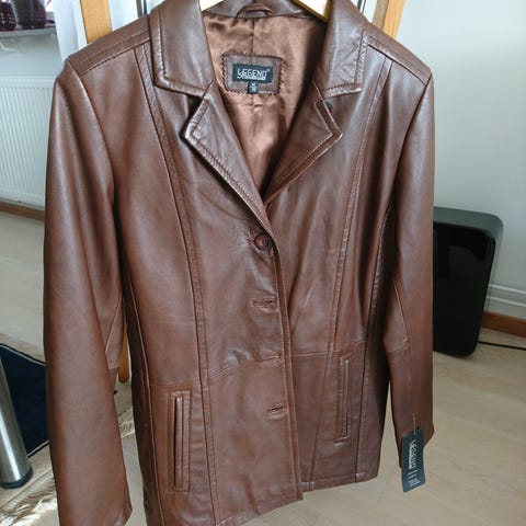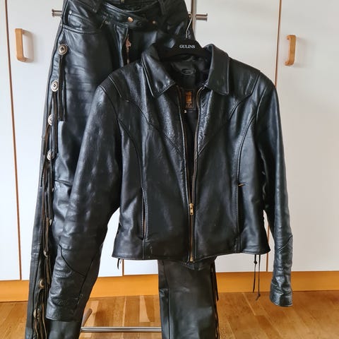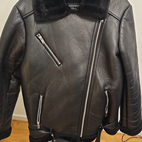 Skinnjacka i svart färg, damstorlek M. Jackan har en klassisk design med dragkedja fram och detaljer i skinn.