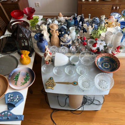 Påskprydnader av olika slag säljes. Ägghönor, tuppar och påskägg. Priser från 50 kr upp till 1000 kr beroende på föremål.