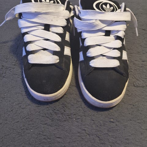 vita ränder på sidorna och klassisk Adidas-logga på plösen. Supersköna och perfekta vårskor🍀 Skorna har snörning och platt sula, perfekt för en avslappnad streetstyle-look. Unisex.