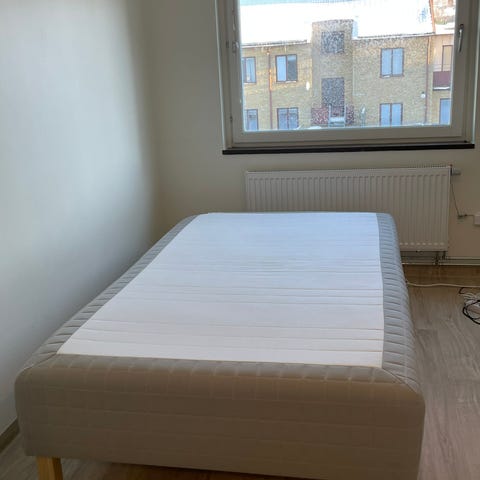 En mycket fin säng Songesand med förvaringslådor under från Ikea skick som ny pocketmadrass Valevåg och bäddmadrass Nopakte ock madrasskydd Ängskorn Hemnes sängbord/Avlastningsbod. Allt köpt för 1 år sedan nästan aldrig använd kvitto finns.