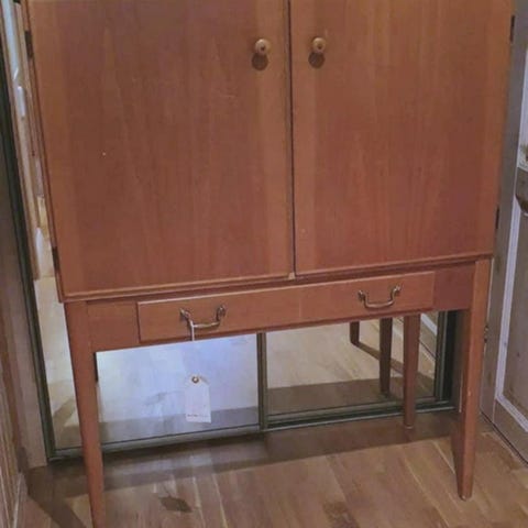 Finns ett par mörka märken på skåpet.