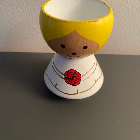 Lucie Kaas äggkopp polis. Äggkoppen är i trä som målats tyvärr har färgen spruckit.