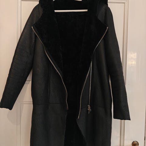 Säljer en helt ny kappa från märket Mackage. Skinnkrage. Skärp i midjan. Mycket snygg. Säljes då den tyvärr är för liten för mig.