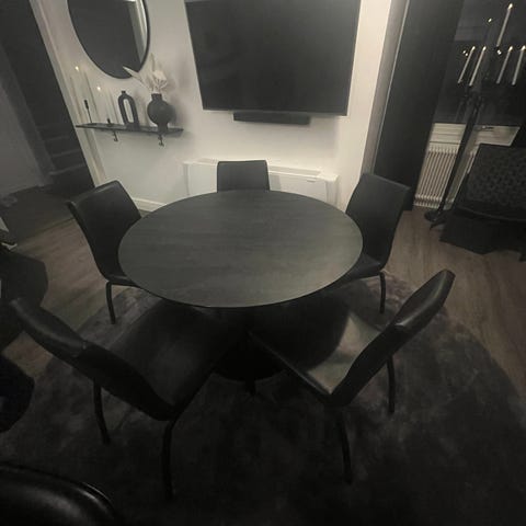Säljer detta svarta stora matsalsbord med ribbat underrede. 2,20*100cm