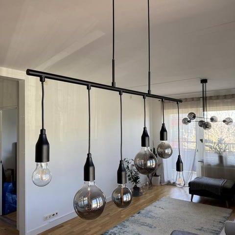 Svart taklampa med 7 glödlampor. Perfekt för att skapa en mysig atmosfär i hemmet.
