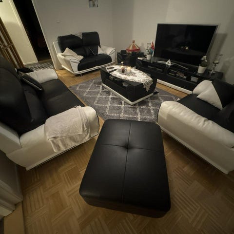 Jag vill sälja min äkta Italienska skinnsoffa grupp med soffbord