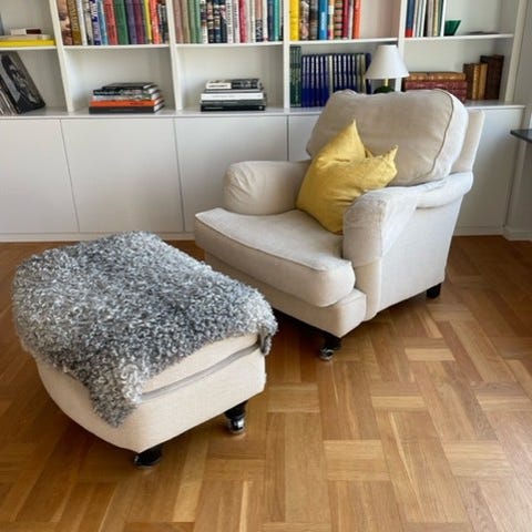 En mycket skön och fin fåtölj med tillhörande fotpall.