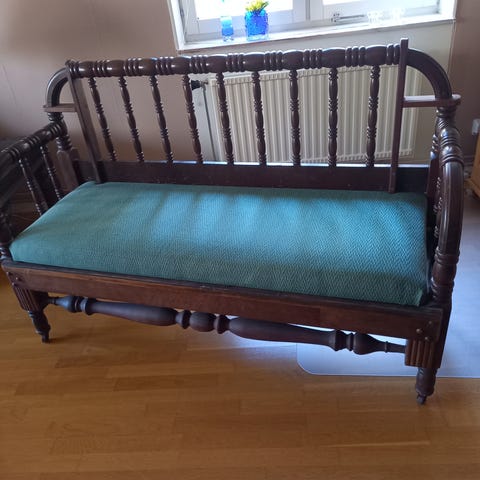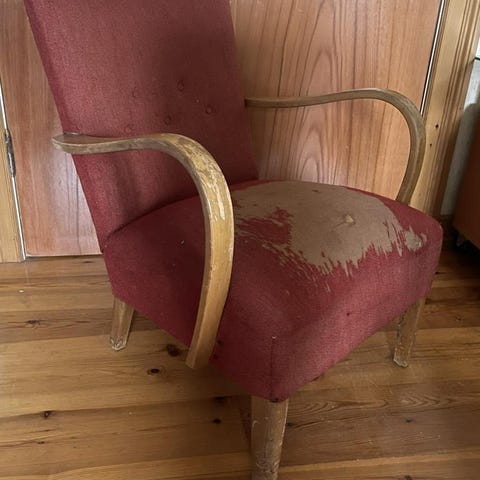Som ni ser på bilden så är soffan och fåtöljen av äldre modell. De är välandvända. Funkar fortfarande att sitta på och kan användas till uterum eller extramöbler. Fåtöljens högra sida kan va lite lössittande på ovanssidan vid ryggstödet. Annars inga konstigheter.