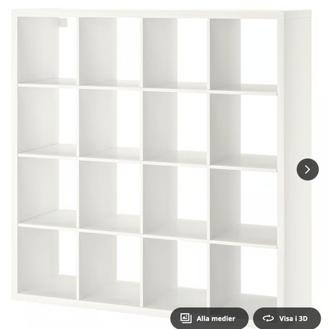 Samma mått på öppningar som Kallax men med ben och en skiva ovanpå.