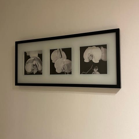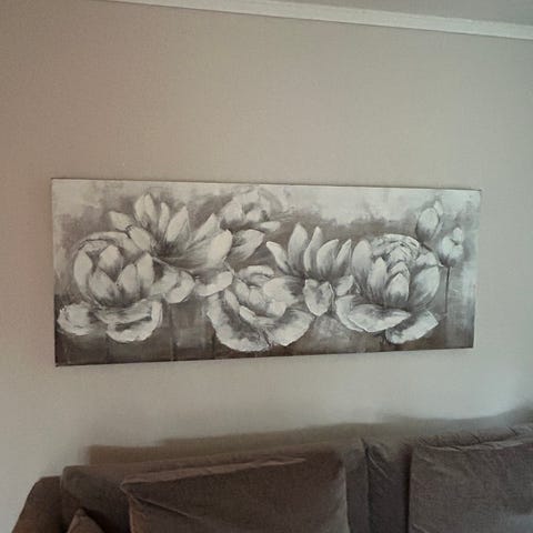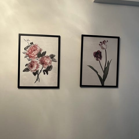 Mio dekorationskonst i form av tavlor med motiv av en påfågel mått 60•90 och blommor 80•100