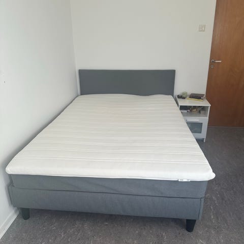 Bredden är 140 cm. Finns madrass som kan medfölja men den är sliten.