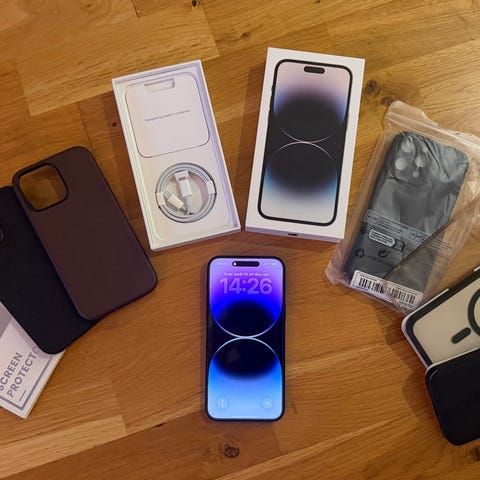 Säljer en iPhone 14 pro max. Telefonen är I topp skick. Skärmen och baksida är precis som ny. Batterihälsan ligger på 85 procent. Det som följer med är Orginal kartong och laddkabel plus en skal som kostar 449 på butik. Det finns liten mikroskopiska repor på kanterna som syns nästan inte. Alla delar på telefonen är Orginal så telefonen har aldrig varit på reparationer.