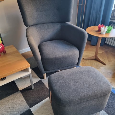 Bekväm och stadig, perfekt för vardagsrum, läshörna eller som extra sittplats.