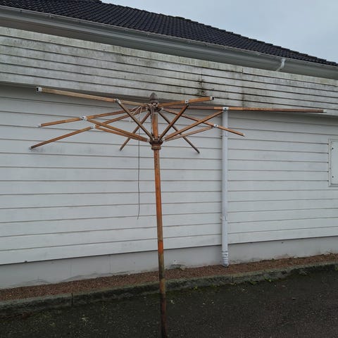 Har varit noga med att skydda öppningen mot regn när inte parasollen suttit i. Därav den avklippta plastflaskan och påsen över öppningen på röret.
