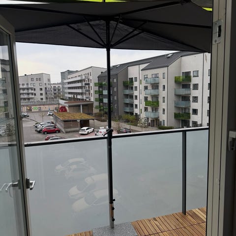 Här är en rund vacker parasollfot i ljus sten. Köptes för 1-2 år sen.