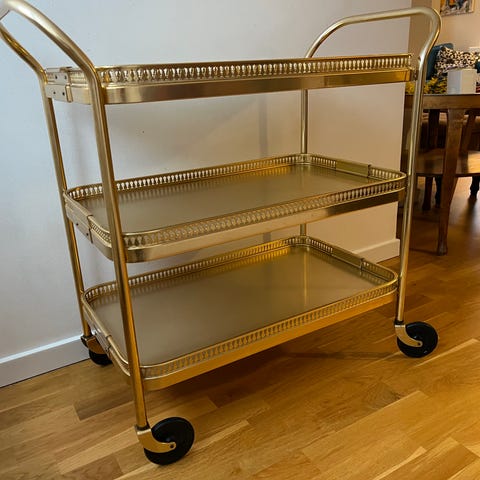 Fin te vagn med glashyllor
