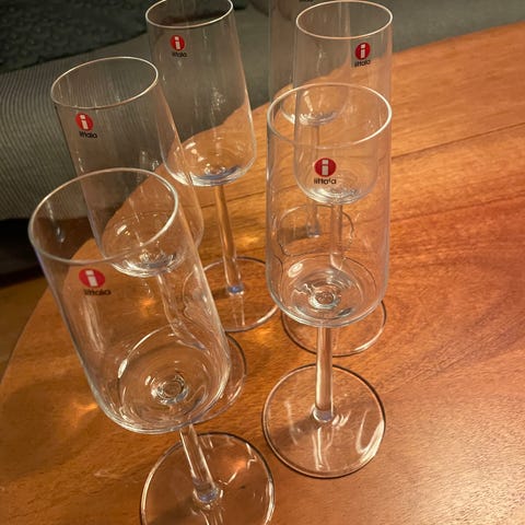 Säljer ett antal Iittala Essence glas - champagne, dessertvin och vattenglas i 2 storlekar enligt bilder samt nedan.