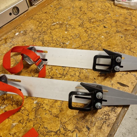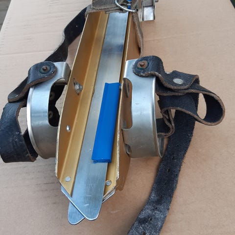 Almgrens långfärdsskridskor, stabila, ställbara för pjäxa, känga med läderremmar, 50 cm lång skena