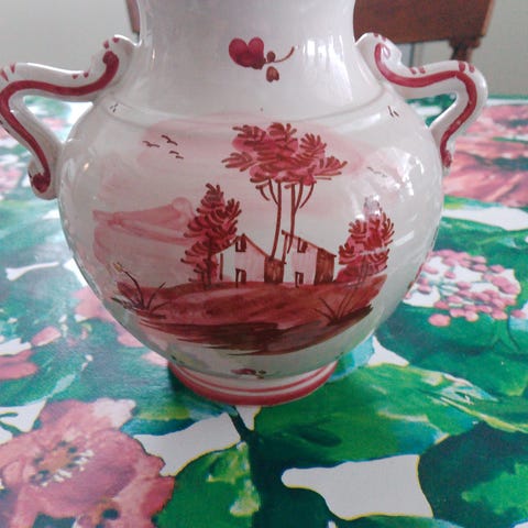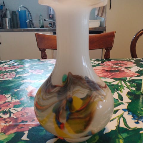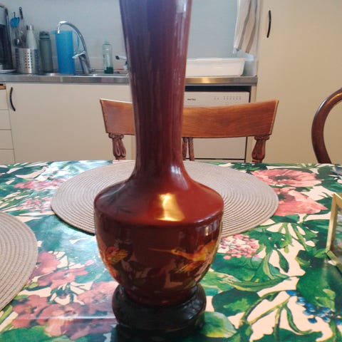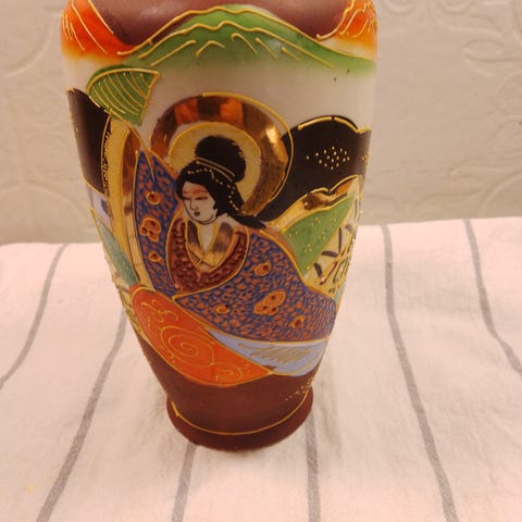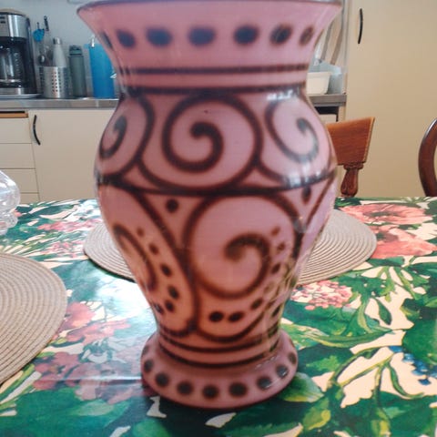 Randig retro vas från Kina. Med konisk form/ formgivning. Stämpel i botten. Höjd 25.5 cm. Fin glasyr. Keramik.