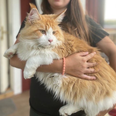 Hej, vi har en kastrerad Maine Coon hane som vi behöver omplaceras till ett lugnt hem där han får bo som ensamkatt och utan små barn.
