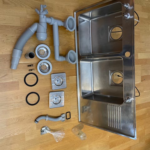 Säljer en dubbel diskho i rostfritt stål från Intra samt köksblandare från Mora. Allt är begagnat men i bra skick och fullt fungerande.