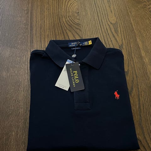 Ralph Lauren Polo långärmad pikétröja i blå färg, storlek XS, tillverkad i bomull. Passar för män och har klassisk pikédesign med krage och knappslå. Blivit för liten för min son som nu är 1.84 cm.