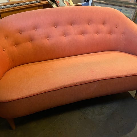 Vi säljer nu vår älskade tresitsiga soffa, modellen heter "Hemmakväll" och är designad av Carl Malmsten. Köpt på auktion 2022, och har visst slitage. Lite band sitter lösa, någon liten fläck och skavd kant finnes. Otroligt skön att sitta i.