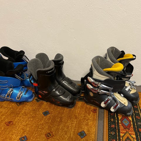 Höger: Ställbara barnpjäxor, tecnopro xtd. Innerstorlek (tå till häl) 180-215 mm (skost. 29-33).