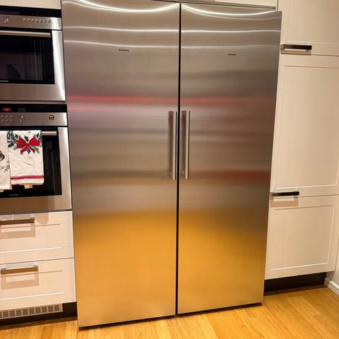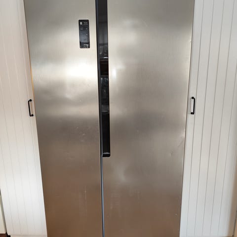 Whirlpool Side-by-Side kylskåp i rostfritt stål med två dörrar. Utrustad med inbyggd is- och vattendispenser samt flera hyllor och förvaringsutrymmen för livsmedel. Passar för hem och kök som kräver kyl- och fryskapacitet. Mått höjd 176, 92 bredd, djup 69 inklusive handtag 76 cm djup