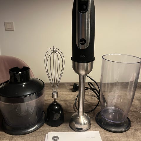 Bosch stavmixer med kraftig effekt på 600 W. Vit färg och kompakt design. Funktion för att reglera kraft. I fint använt skick, fungerar felfritt.