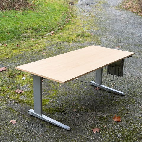Säljer ett fint höj och sänkbart skrivbord, i massivt trä.