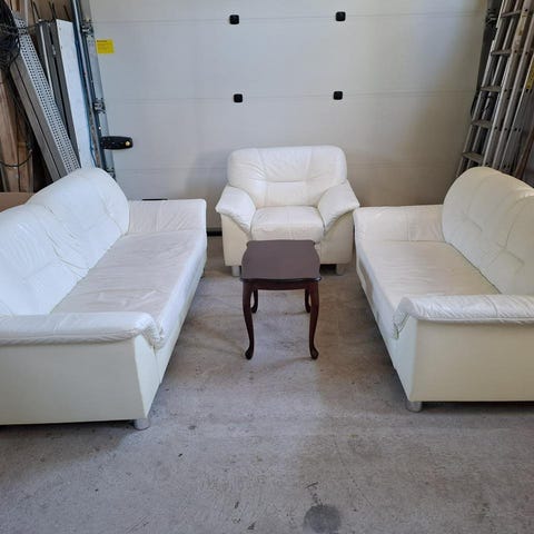 Soffgrupp 3-sits soffa + 2 fåtöljer i skinn