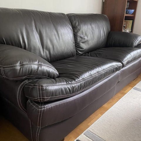 Perfekt till första boendet, student, gäststuga eller den som vill ha en rejäl och skön lädergrupp till bra pris. Passar perfekt i vardagsrum, gillestuga eller som retro/vintage-möbler.