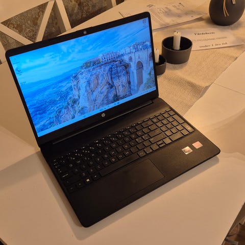 HP bärbar dator 15 R5-5/8/256 15.6" laptop, med AMD Ryzen 5 5500U processor och AMD Radeon Graphics.